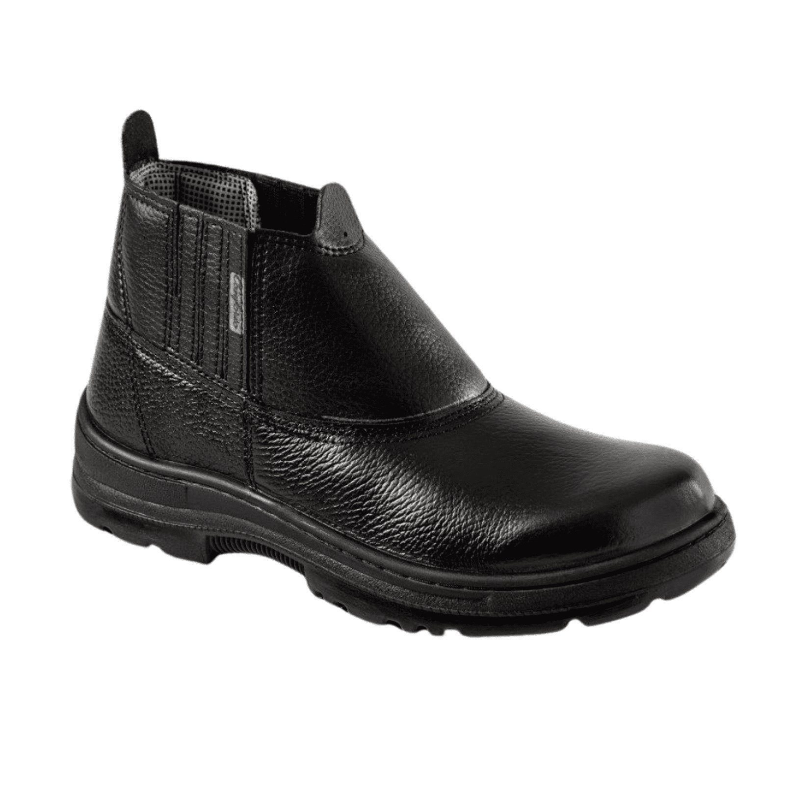 Botina de segurança confeccionado em couro vaqueta integral com estampa relax, oferecendo conforto e durabilidade. Equipado com elástico nas laterais para ajuste prático, sem biqueira, e palmilha interna removível em EVA com tratamento antimicrobiano. Ideal para ambientes de trabalho com riscos leves, proporcionando uniformidade, proteção e conforto ao usuário.